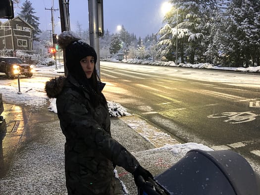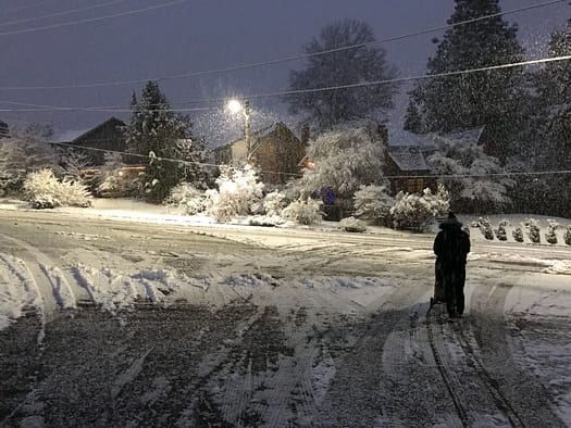 Es hät dur d Nacht no fliessieg witer gschneeit und willmer devo usgange sind, dass es da nöd wird schneeie, han ich natürli nur mini Turnschueh debi gha.